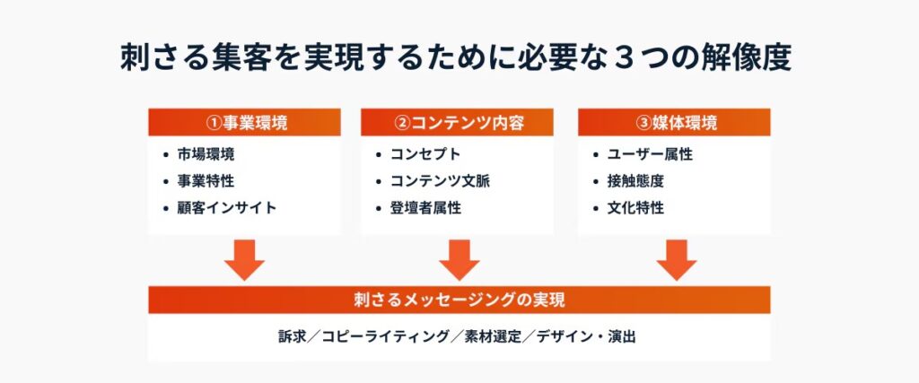 集客に関わる担当者がまず持つべきは、以下3つの解像度です。